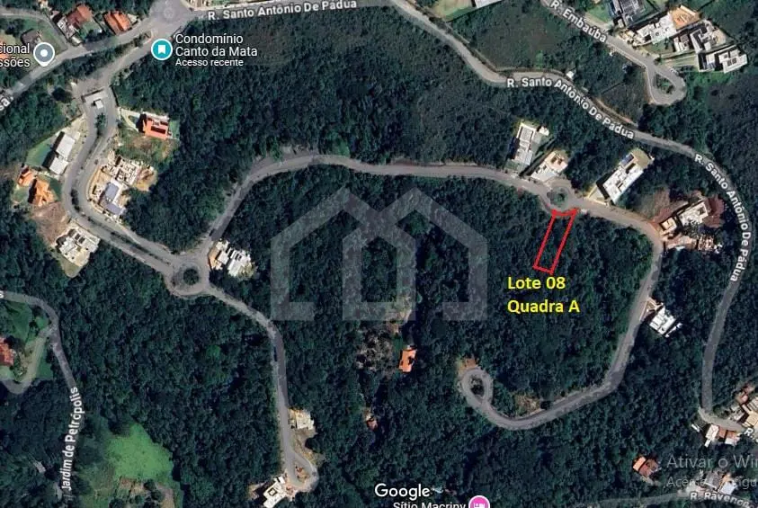 O lote de 1.255 m², cujas fotos são as primeiras neste anúncio, é em aclive, com anteprojeto arquitetônico desenvolvido, a ser modificado e aprovado de acordo com as suas necessidades. Tem exuberante vista para as montanhas de Macacos em rua tranquila, sem saída.