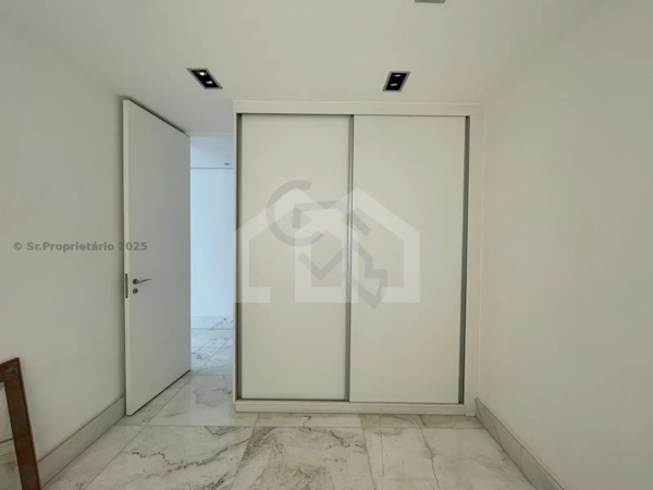 3 quarto amplos, um com piso em tábua corrida, e dois com piso em mármore, armários, sendo uma suíte com closet, revestido em mármore claro, box em vidro temperado, chuveiro com ducha metálica, iluminação embutida no teto, espelho e bidê